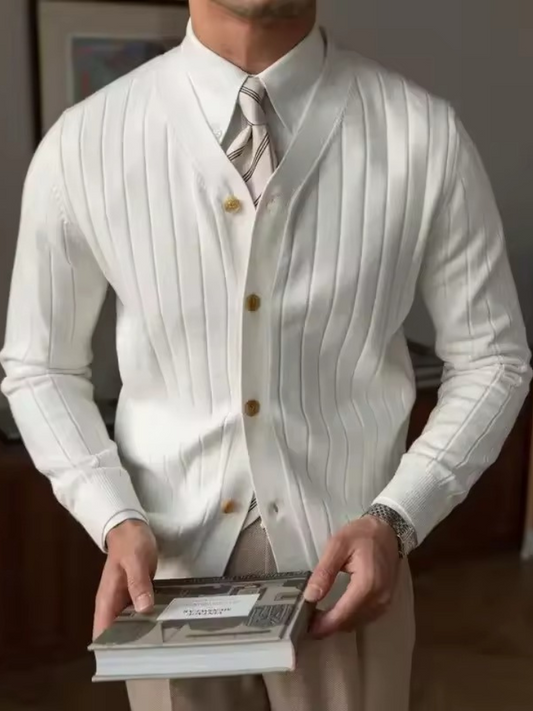 Dunkelblauer Damenpullover mit V-Ausschnitt im Old-Money-Stil
