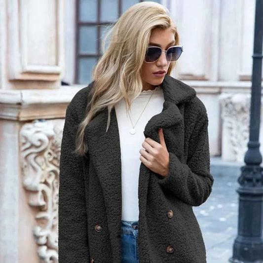 Edle, lange Pelzjacke von Allina mit Gürtel
