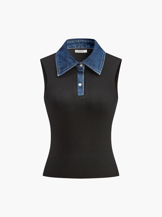 Ärmelloses Rippenhemd aus Denim mit Stehkragen von Fudus