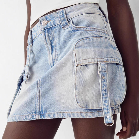 Damen Denim-Cargo-Rock mit praktischen Taschen und lässigem Schnitt Amawinc