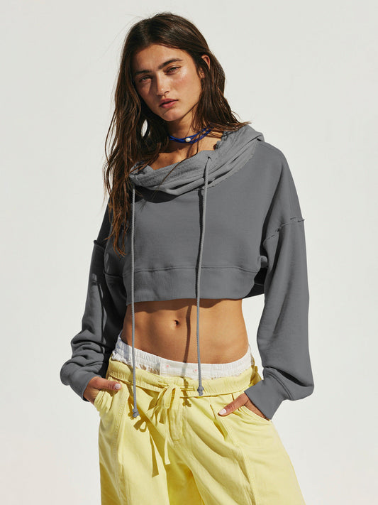 Damen cropped Sweatshirt mit lässigem Schnitt und Kängurutasche Amawinc
