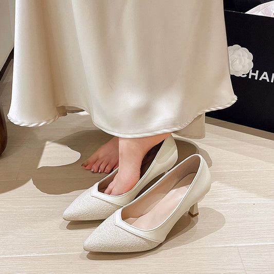 Damen Elegante spitze Pumps mit transparentem Absatz und weichem Obermaterial Amawinc