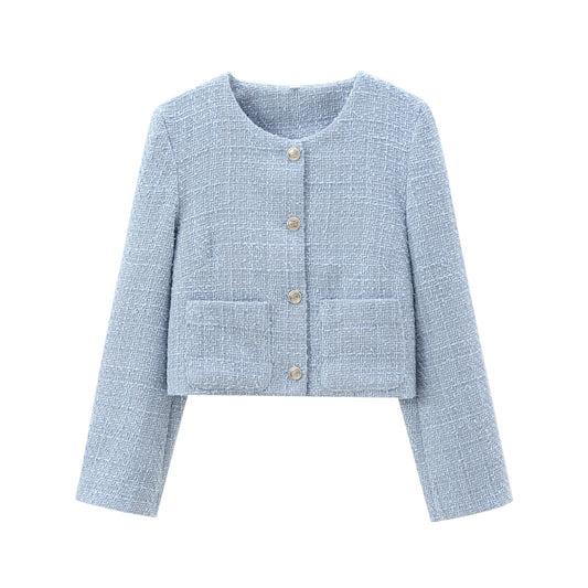 Damen elegante Kurzjacke im strukturierten Tweed-Stil mit praktischen Taschen Amawinc