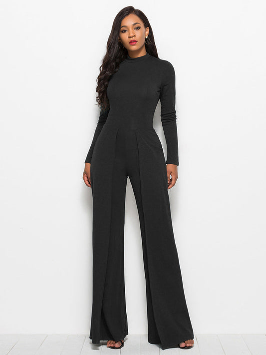 Damen Eleganter und fließender Jumpsuit mit langen Ärmeln Amawinc