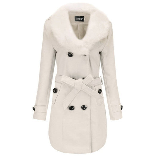 Damen eleganter Übergangs-Mantel mit abnehmbarem Kunstfellkragen Amawinc