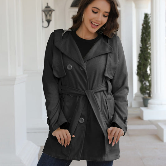 Damen eleganter Trenchcoat mit doppelter Knopfreihe und praktischem Schnitt Amawinc