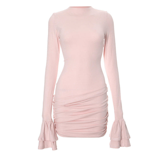 Damen figurbetontes Minikleid mit voluminösen Ärmeln und Raffung Amawinc