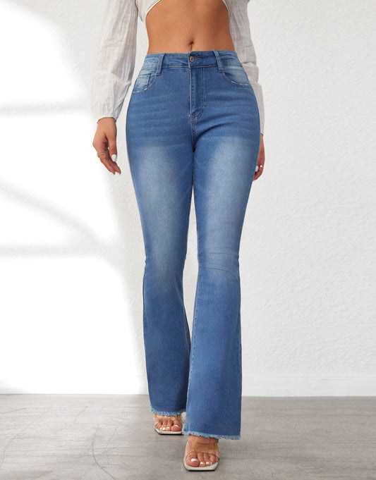 Damen Flared Jeans mit stylishen Fransen und hohem Bund Amawinc