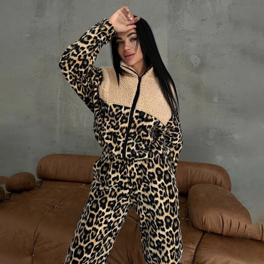 Damen Fleece-Set mit Leopardenmuster von Maril