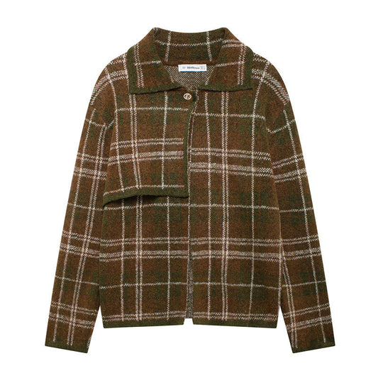 Damen Fließende Karojacke mit elegantem Stehkragen Amawinc