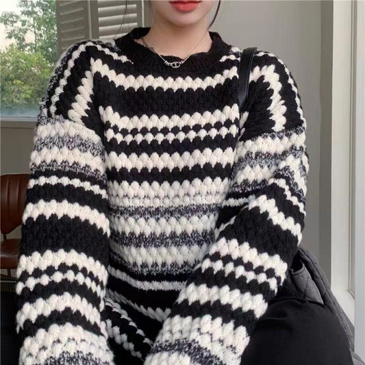 Damen gemusterter Strickpullover mit strukturiertem Gewebe und lässigem Schnitt Amawinc