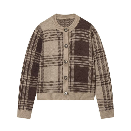 Damen gemusterte Strickjacke mit klassischen Karomotiven Amawinc