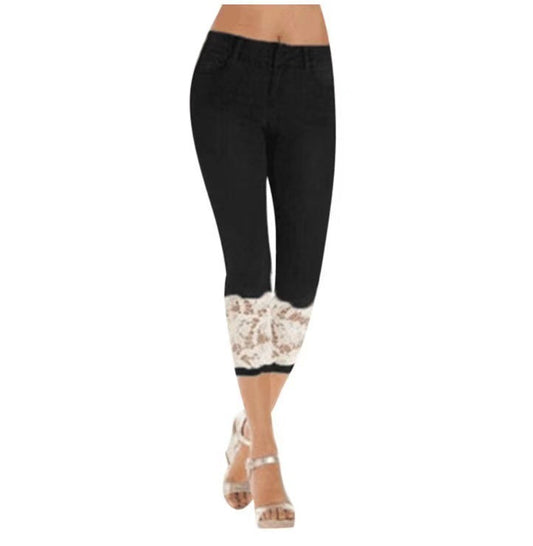 Damen Jeanshose mit Spitzenverzierung und figurbetontem Schnitt Amawinc
