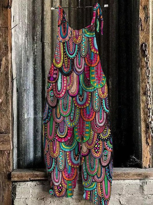 Damen Jumpsuit mit weit geschnittenen Beinen und elegantem Giraffenmuster Amawinc