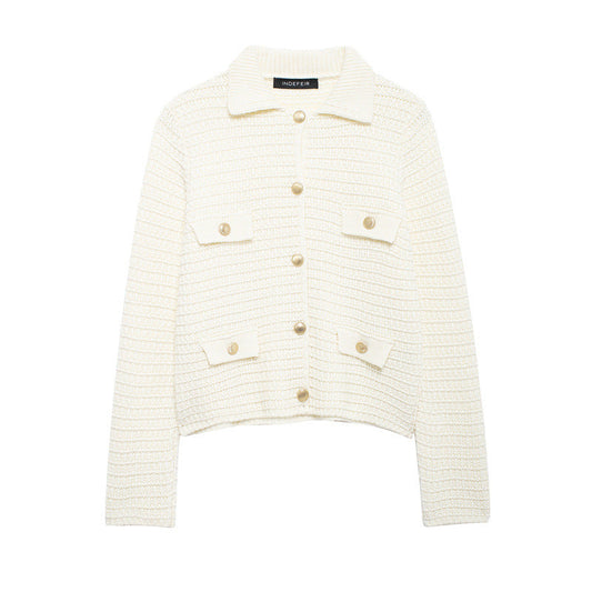 Damen Kurze Strickjacke mit Knopfdetails und aufgesetzten Taschen Amawinc