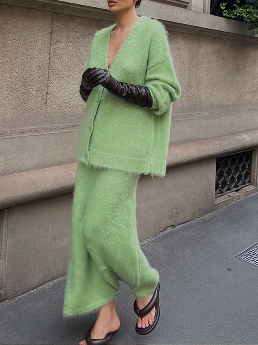 Damen kuschelige Strickjacke und Wadenlanger Rock Set Amawinc