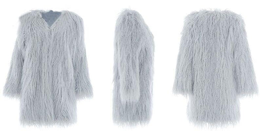 Damen Kuscheliger Langmantel aus flauschigem Kunstpelz Amawinc