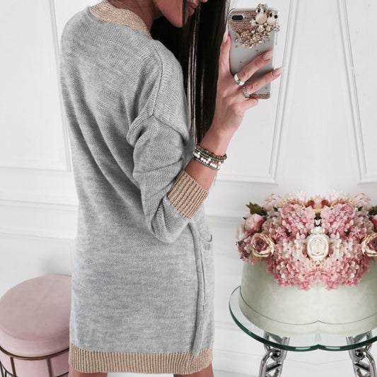 Damen Langarm Strickjacke mit modischem Blockdesign und lockerer Passform Amawinc