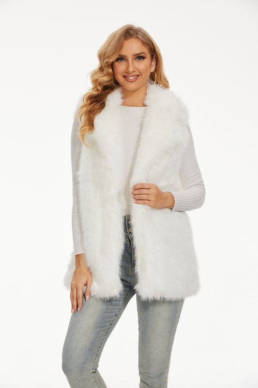 Damen Lange Kunstfell-Weste mit hohem Kragen und weichem Innenfutter Amawinc
