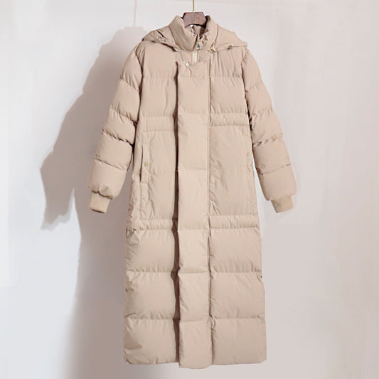 Damen Lange Daunenjacke mit verstellbarer Kapuze und luxuriösem Innenfutter Amawinc