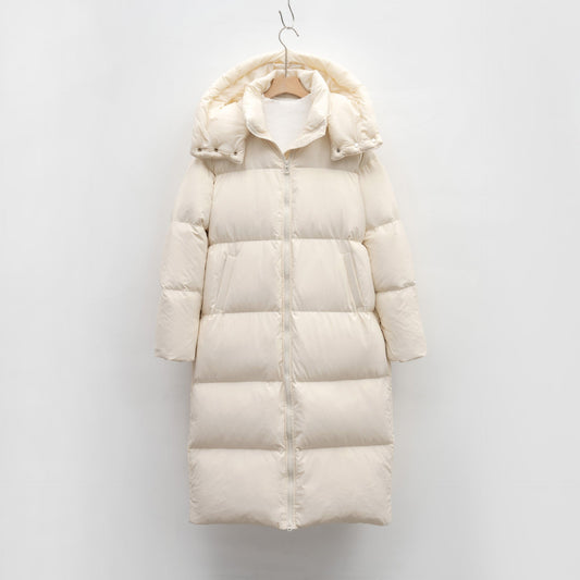 Damen langer, stilvoller Daunenmantel mit praktischer Kapuze und wärmendem Futter Amawinc