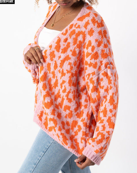 Damen lässige Strickjacke im Leopardenmuster Amawinc