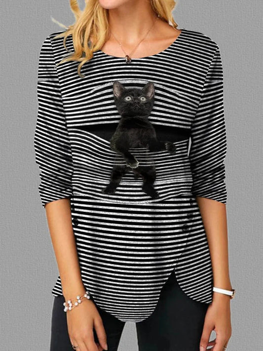 Damen lässige T-Shirt mit Katzenmotiv Amawinc