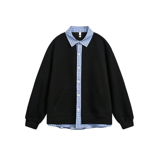 Damen Lässiger Oversized Kapuzenpullover mit Hemdkragen Amawinc