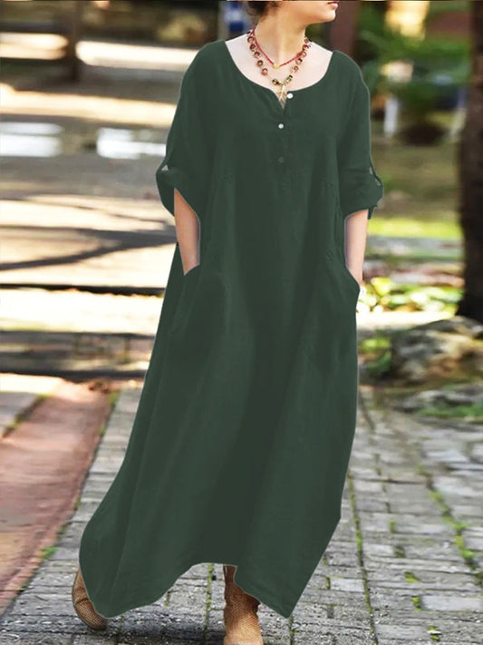 Damen lässiges Maxikleid mit praktischen Taschen und Knopfdetails Amawinc