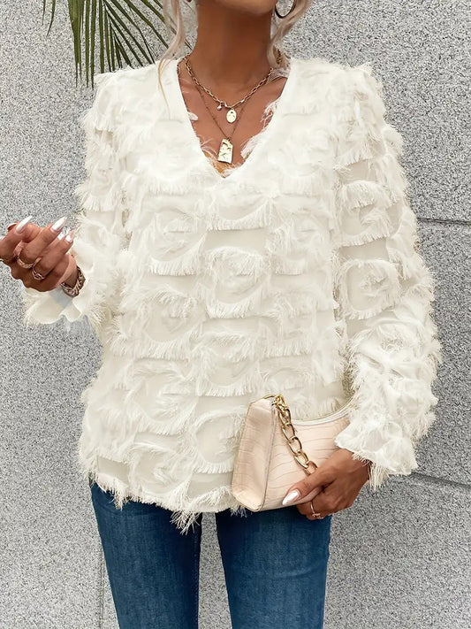 Damen luxuriöse Rüschenbluse mit V-Ausschnitt und feinen Details Amawinc