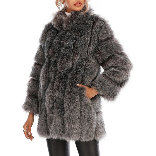 Damen Luxuriöser Kunstpelzmantel mit elegantem Schnitt und hohem Kragen Amawinc