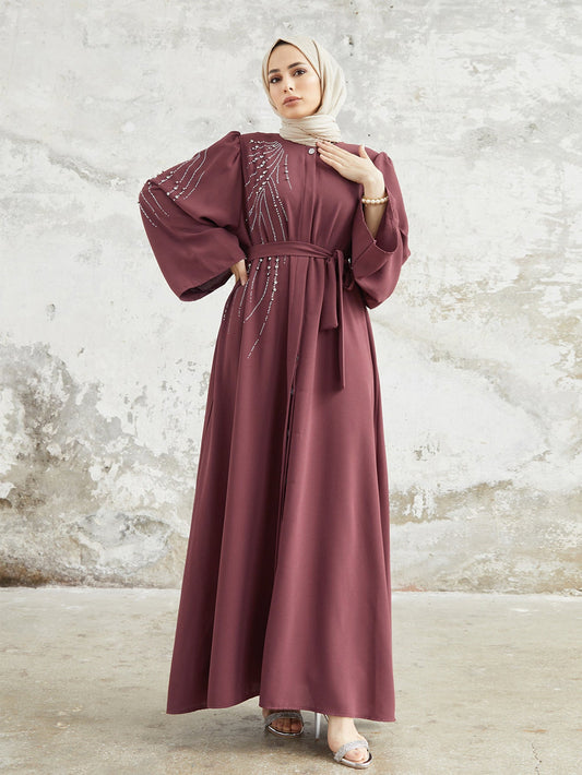 Damen Maxi-Kleid mit funkelnden Applikationen und elegantem Gürtel Amawinc