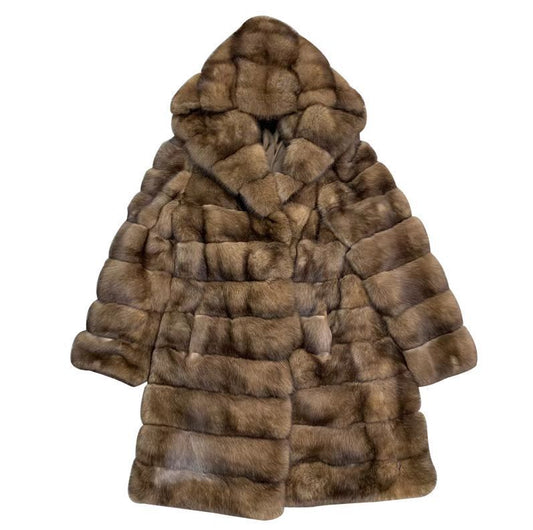 Damen Luxus Kapuzenmantel aus hochwertigem Kunstfell Amawinc