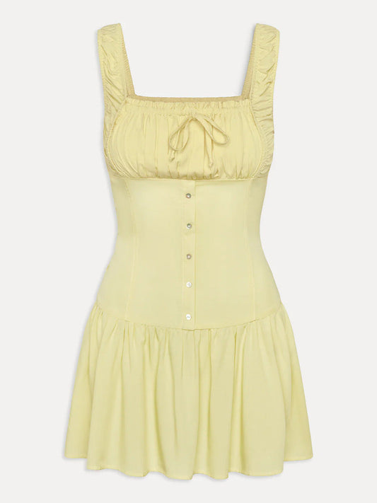 Damen Minikleid mit verstellbaren Trägern und Rüschendetails Amawinc