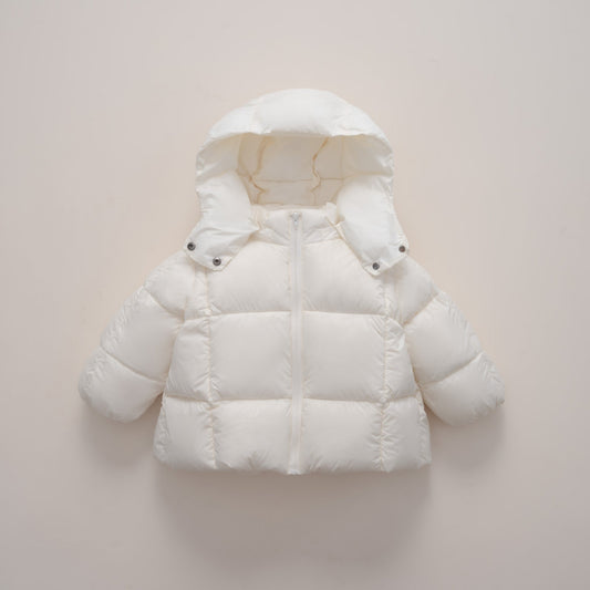 Damen moderne Daunenjacke mit abnehmbarer Kapuze und elastischen Bündchen Amawinc
