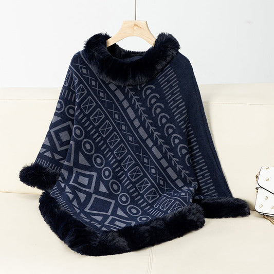 Damen modischer Poncho mit dekorativem Kunstfellkragen Amawinc
