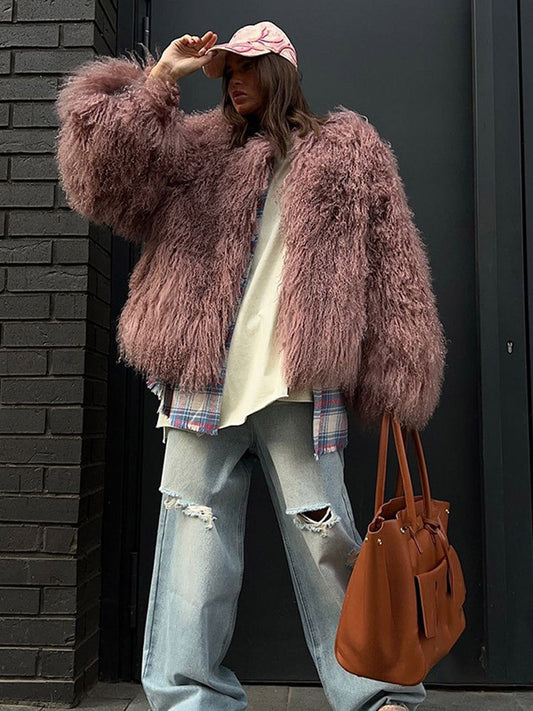 Damen modischer Oversized Pullover mit hochgeschlossenem Kragen Amawinc
