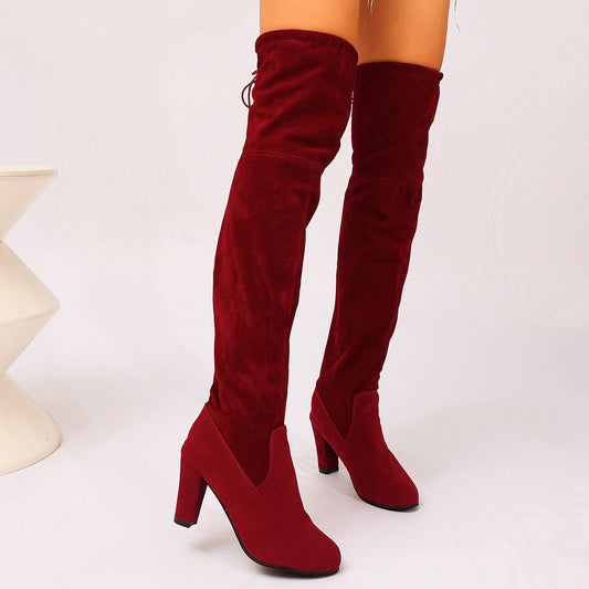 Damen Overknee-Stiefel aus weichem Wildleder mit praktischer Schnürung Amawinc