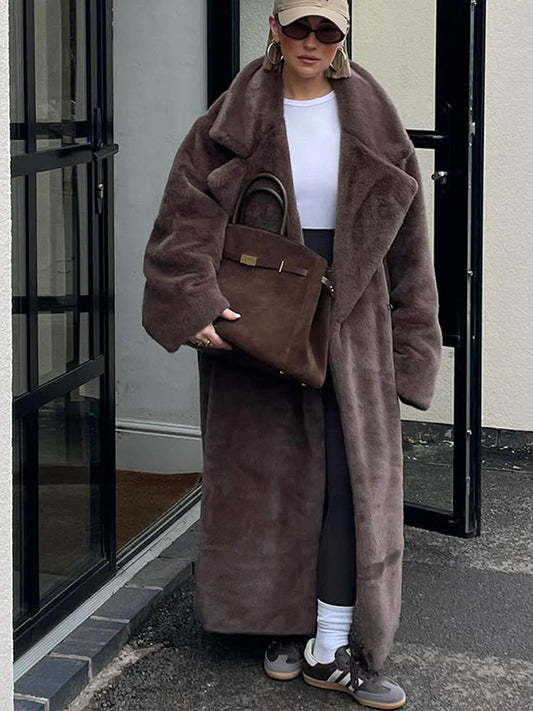 Damen Oversized Kunstfell-Mantel mit luxuriösem Innenfutter und elegantem Schnitt Amawinc