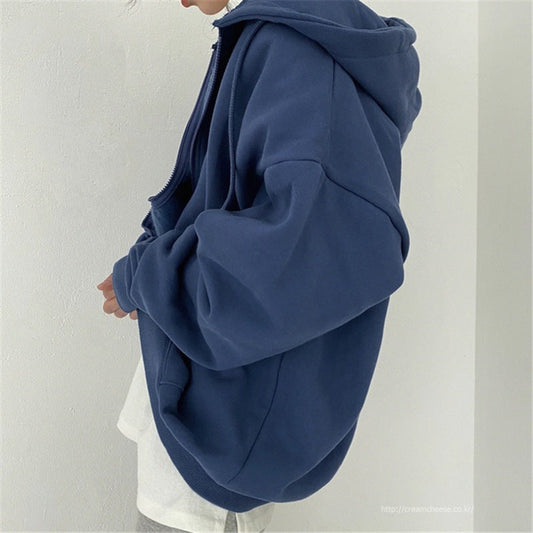 Damen Oversized Kapuzenjacke mit doppeltem Fleecefutter und seitlichen Taschen Amawinc