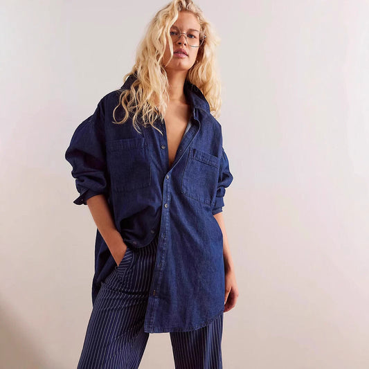 Damen Oversized Jeanshemd mit aufgesetzten Taschen Amawinc