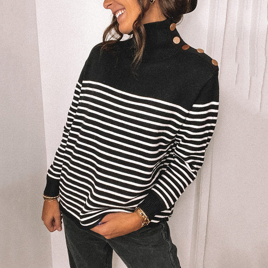 Damen Oversized Strickpullover mit Stehkragen und Knopfdetails Amawinc
