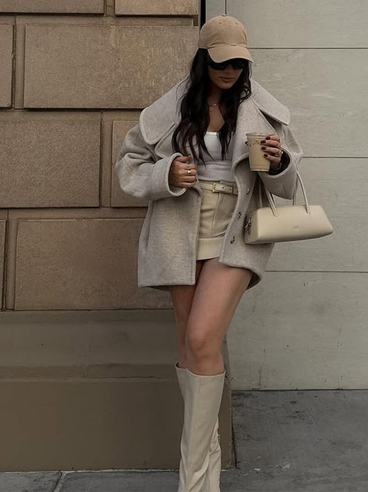 Damen Oversized Wollmantel mit doppelt-knöpfigem Design und lässigem Schnitt Amawinc