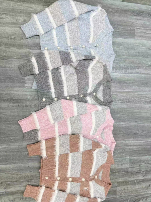 Damen Strickjacke mit breiten Streifenmuster und eleganten Knopfdetail Amawinc