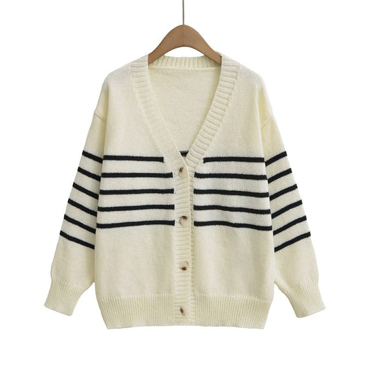 Damen Strickjacke mit Streifenmuster und sanfter Textur Amawinc