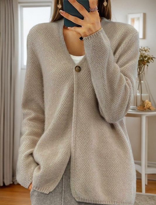 Damen Strickjacke mit strukturiertem Design und elegantem Knopf Amawinc