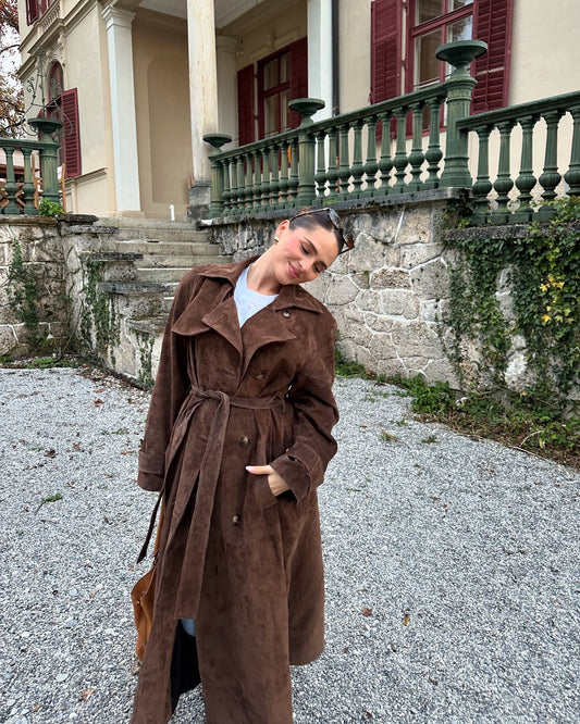 Damen Suede Trenchcoat mit Gürtel und eleganten Knopfdetails Amawinc