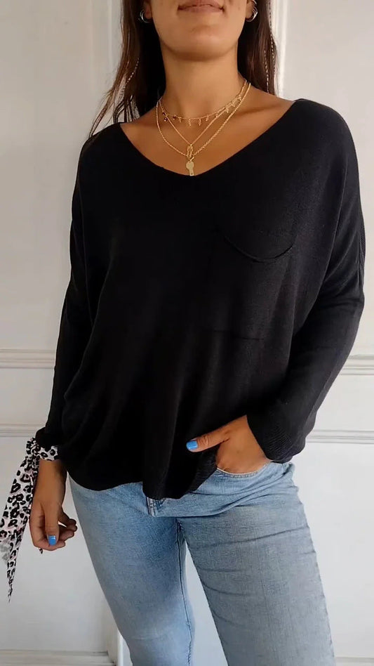 Damen T-Shirt mit langen Ärmeln, Rundhals, unifarben, lässig, mit Taschen