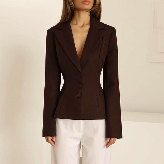 Damen taillierte Blazer-Top mit schmalem Kragen Amawinc