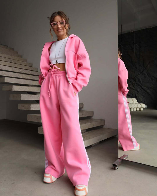 Damen Trendiges Sport-Lounge-Set mit cropped Sweatjacke und weit geschnittenen Jogginghosen Amawinc